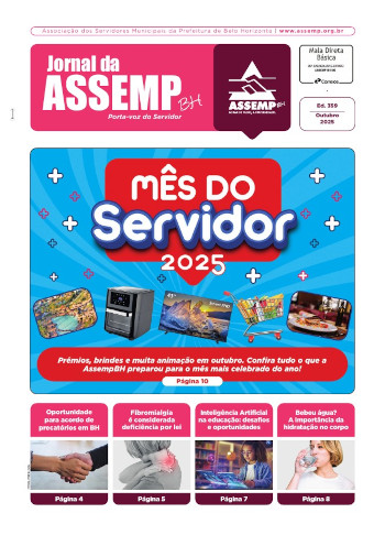 O Jornal da AssempBH, com tiragem de 22 mil exemplares mensais, que pode ser acessado virtualmente, chega até o local de trabalho do servidor por meio de entrega mensal.